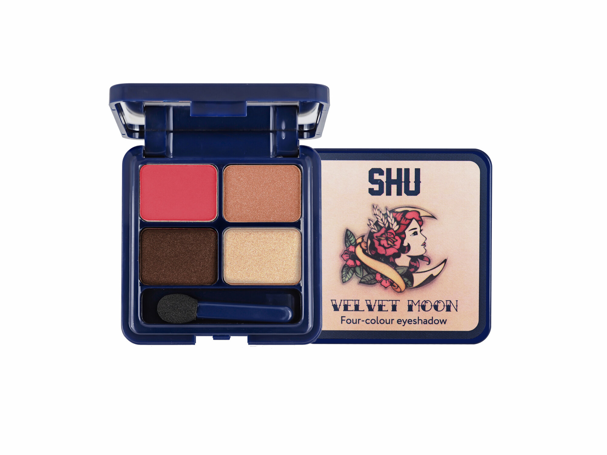 Тени для век Shu Velvet Moon, 4 цвета, тон: N154 нюдово-синий, 4.8г