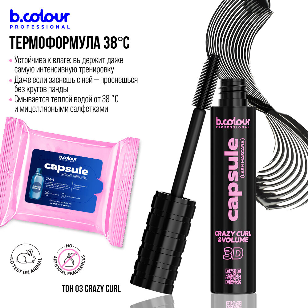 B.COLOUR PROFESSIONAL Тушь для ресниц, термотушь, черная, удлиняющая CAPSULE 03 Crazy curl