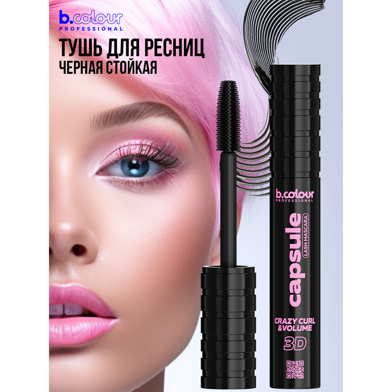 Тушь для ресниц суперстойкая b.colour professional Capsule Doll Eye Effect Curl&Go Lash Mascara т.Black 7,3 мл
