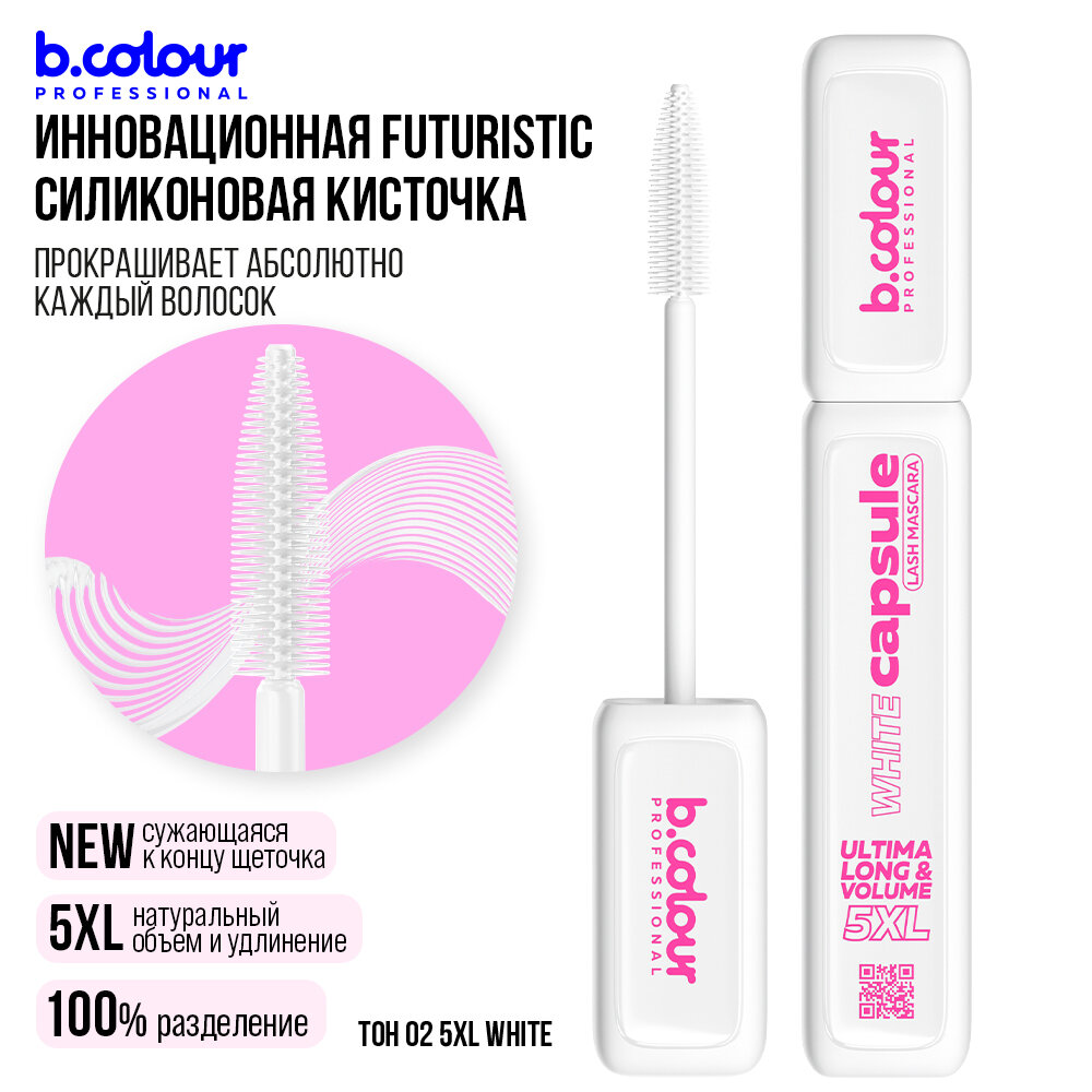 B.COLOUR PROFESSIONAL Тушь для ресниц, термотушь водостойкая, белая CAPSULE 02 5XL White