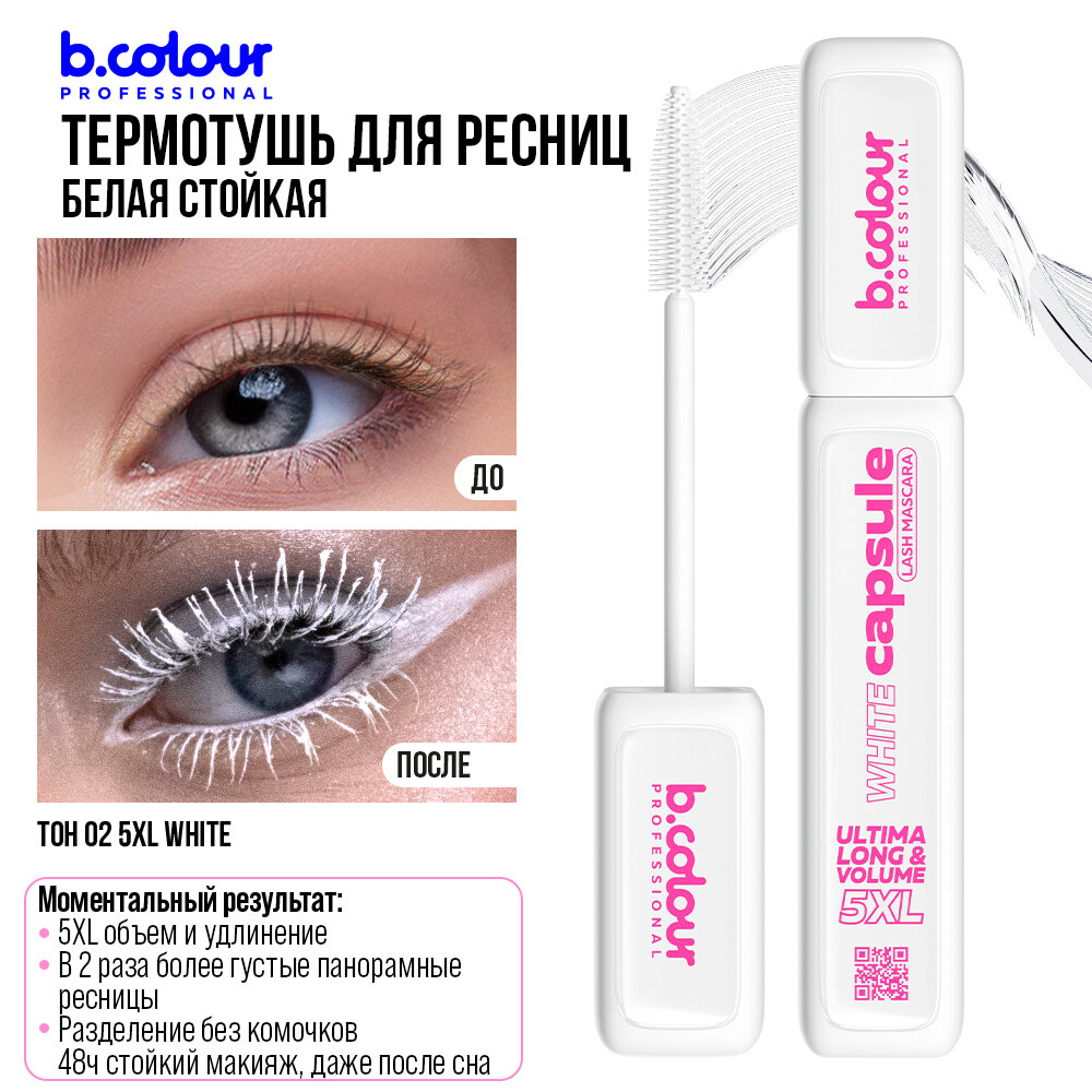Тушь для ресниц белая B.COLOUR PROFESSIONAL CAPSULE термотушь удлиняющая, праймер 02 5XL WHITE