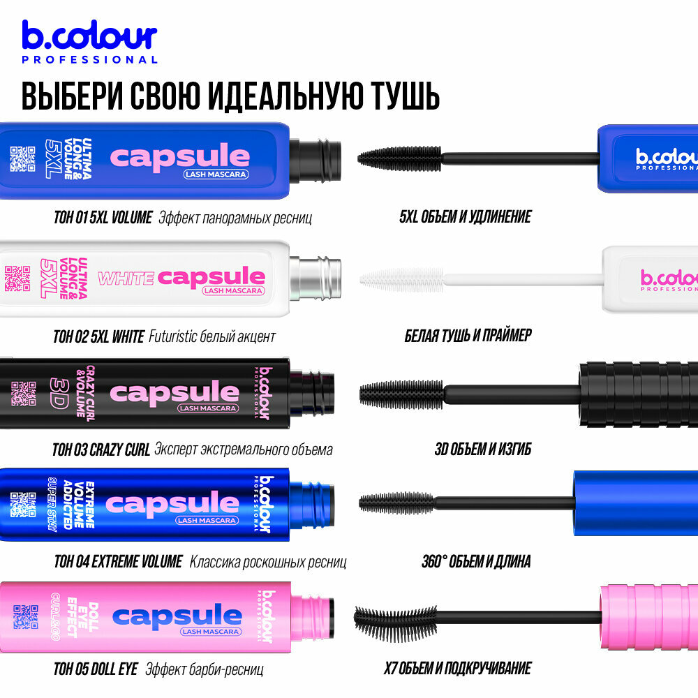 B.COLOUR PROFESSIONAL Тушь для ресниц, термотушь 5XL объем и удлинение CAPSULE, 01 5XL Volume