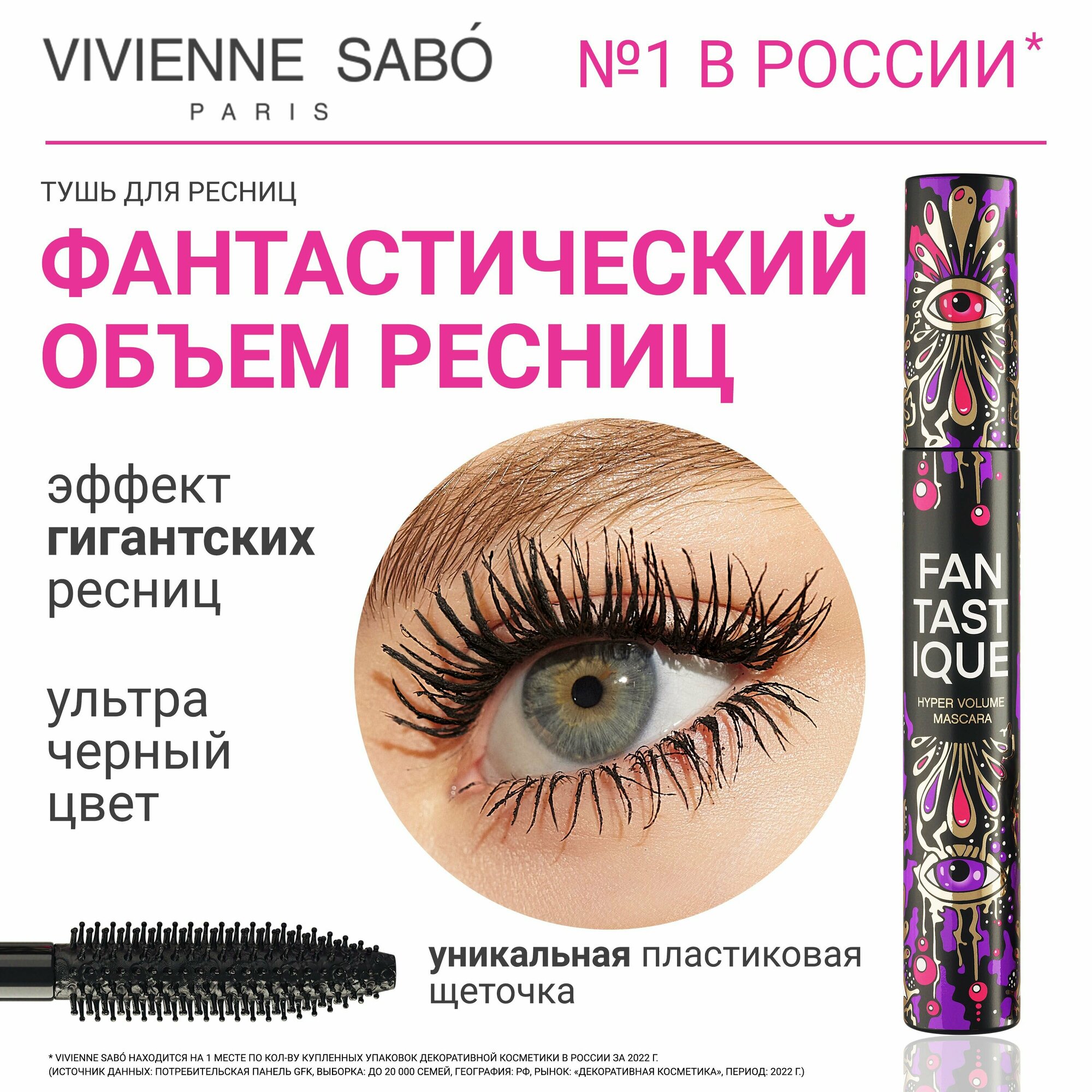 VIVIENNE SABO Тушь для ресниц с эффектом гиперобъема Fantastique, 9 мл, 01 Черный