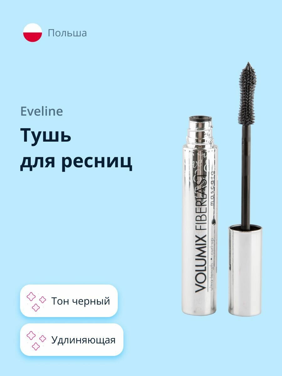 Eveline Cosmetics тушь для ресниц VOLUMIX FIBERLAST удлиняющая черная интересное: