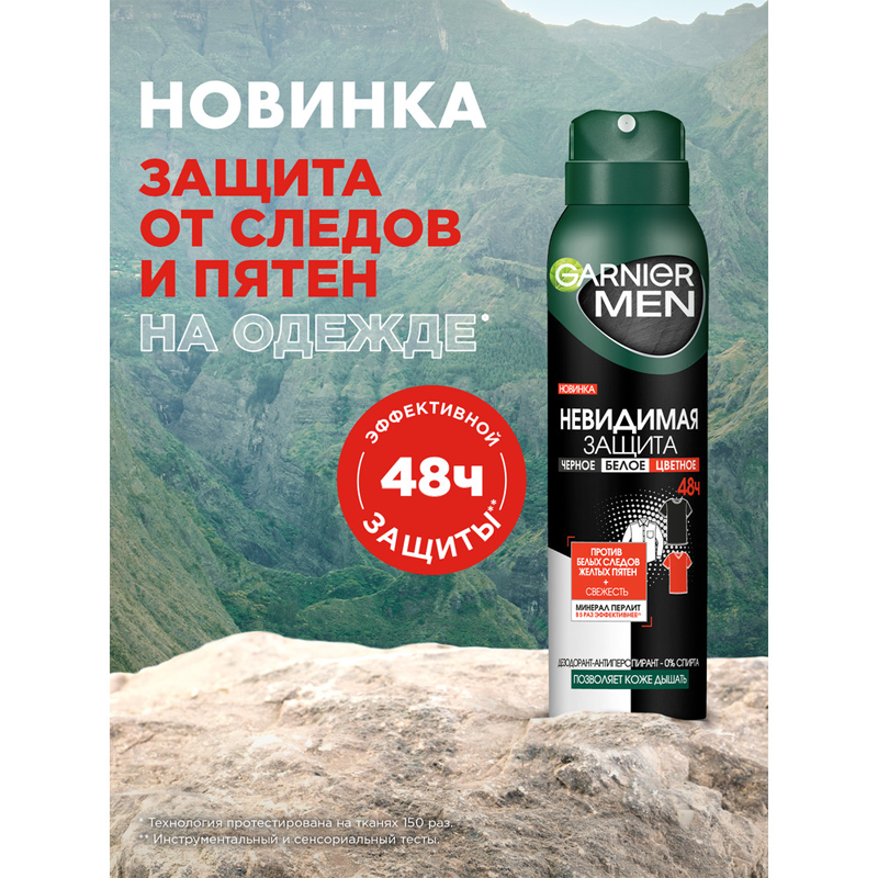 Garnier Дезодорант-антиперспирант спрей "Mineral, Черное, белое, цветное", невидимый, защита 72 часа, невидимый, мужской, 150 мл интересное: