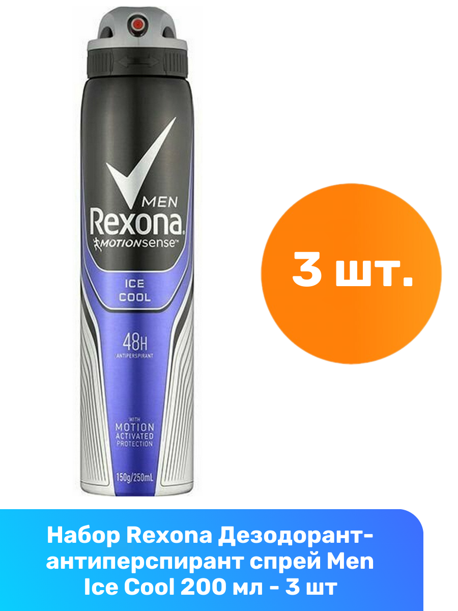 Купить Rexona Дезодорант-антиперспирант спрей Men Ice Cool 200 мл - 3 шт