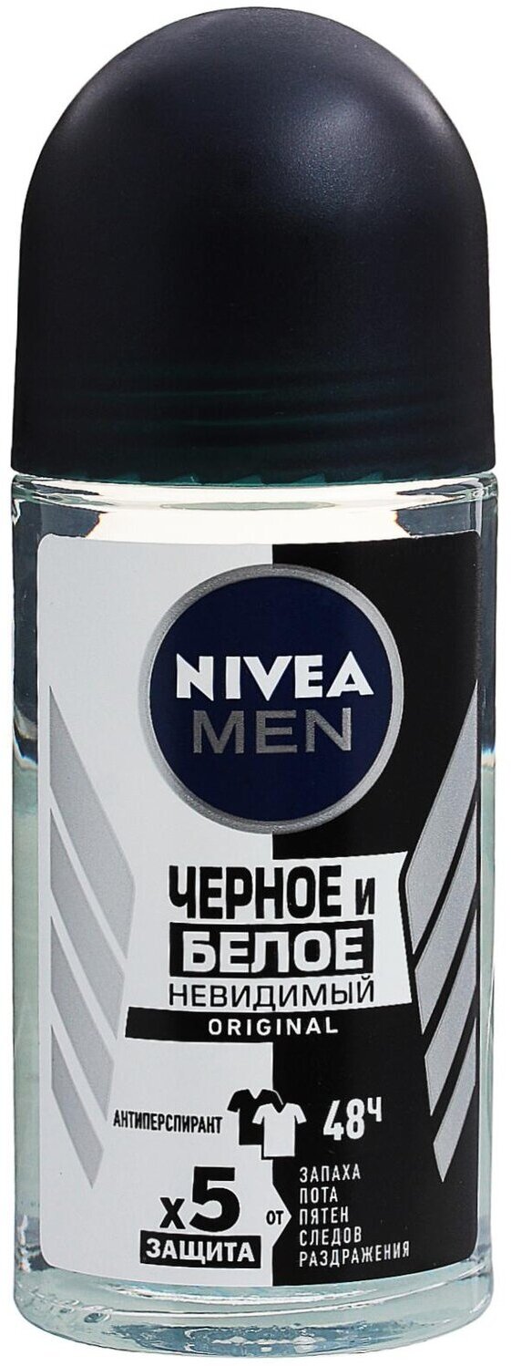 Дезодорант-антиперспирант шариковый NIVEA Men Черное и Белое Невидимый Original, 50 мл
