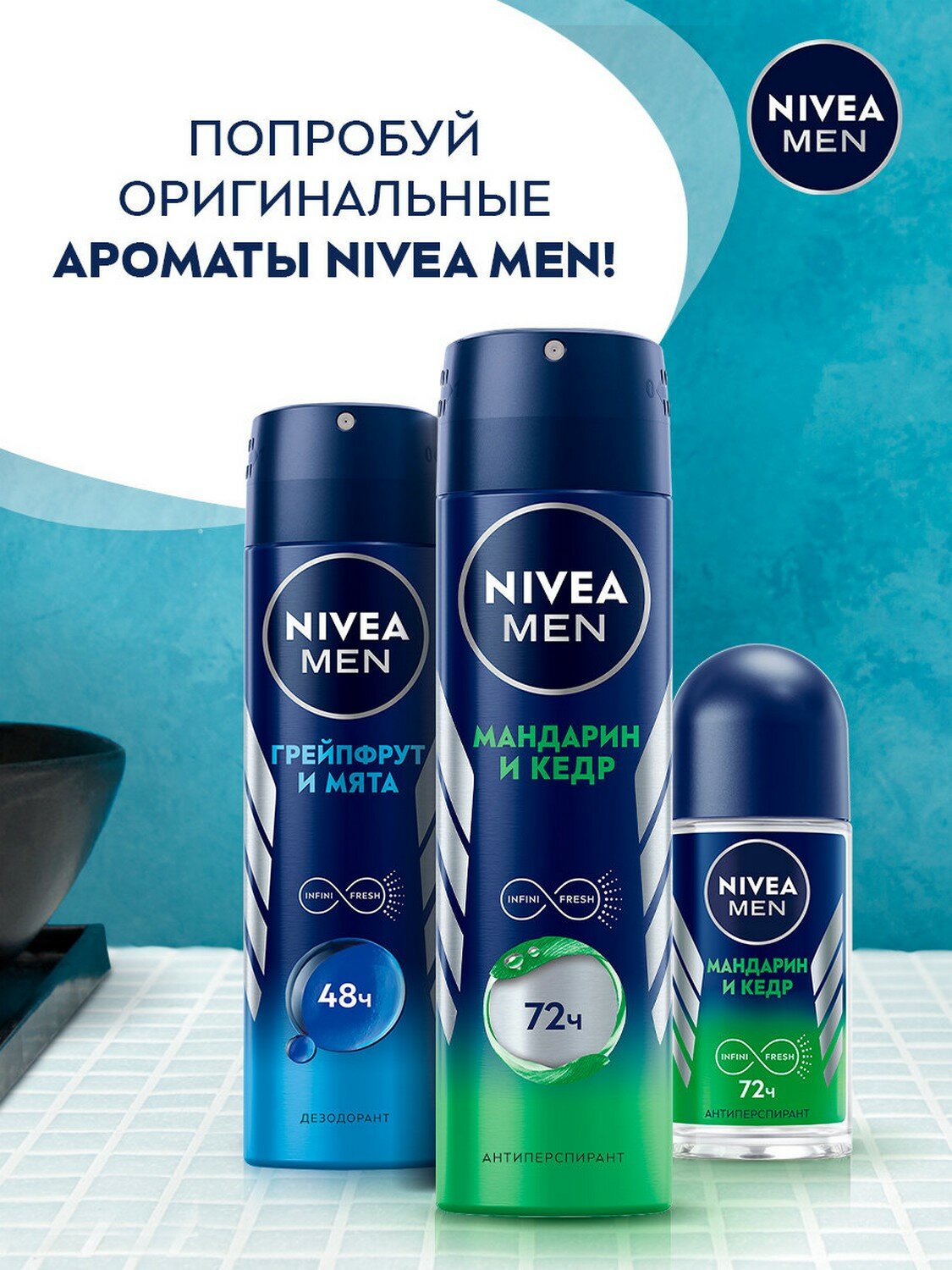 Ниже Вы можете прочитать отзывы на Дезодорант-антиперспирант шариковый Nivea, мужской, Мандарин и кедр, 50 мл, 2 шт, ознакомится с подробными характеристиками, посмотреть интересные обзоры и фотографии на Дезодорант-антиперспирант шариковый Nivea, мужской, Мандарин и кедр, 50 мл, 2 шт.