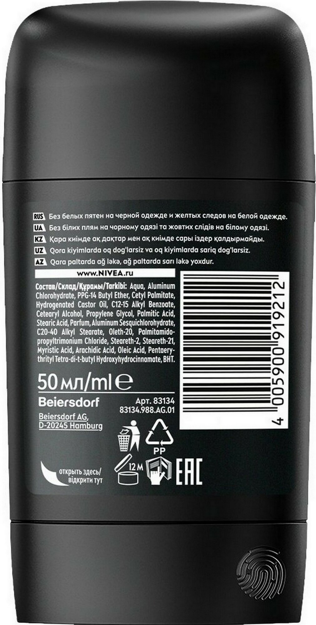 Nivea Дезодорант-Стик мужской, Невидимый, для черного и белого, 50 мл., 3шт.