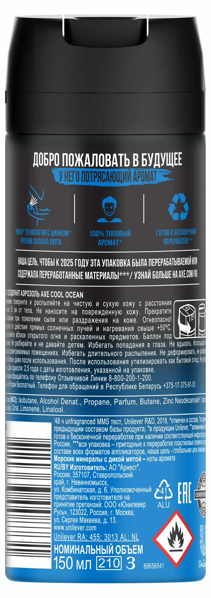 AXE дезодорант-аэрозоль с защитой от запаха пота до 48 часов и топовым акватическим ароматом COOL OCEAN 150 мл интересное: