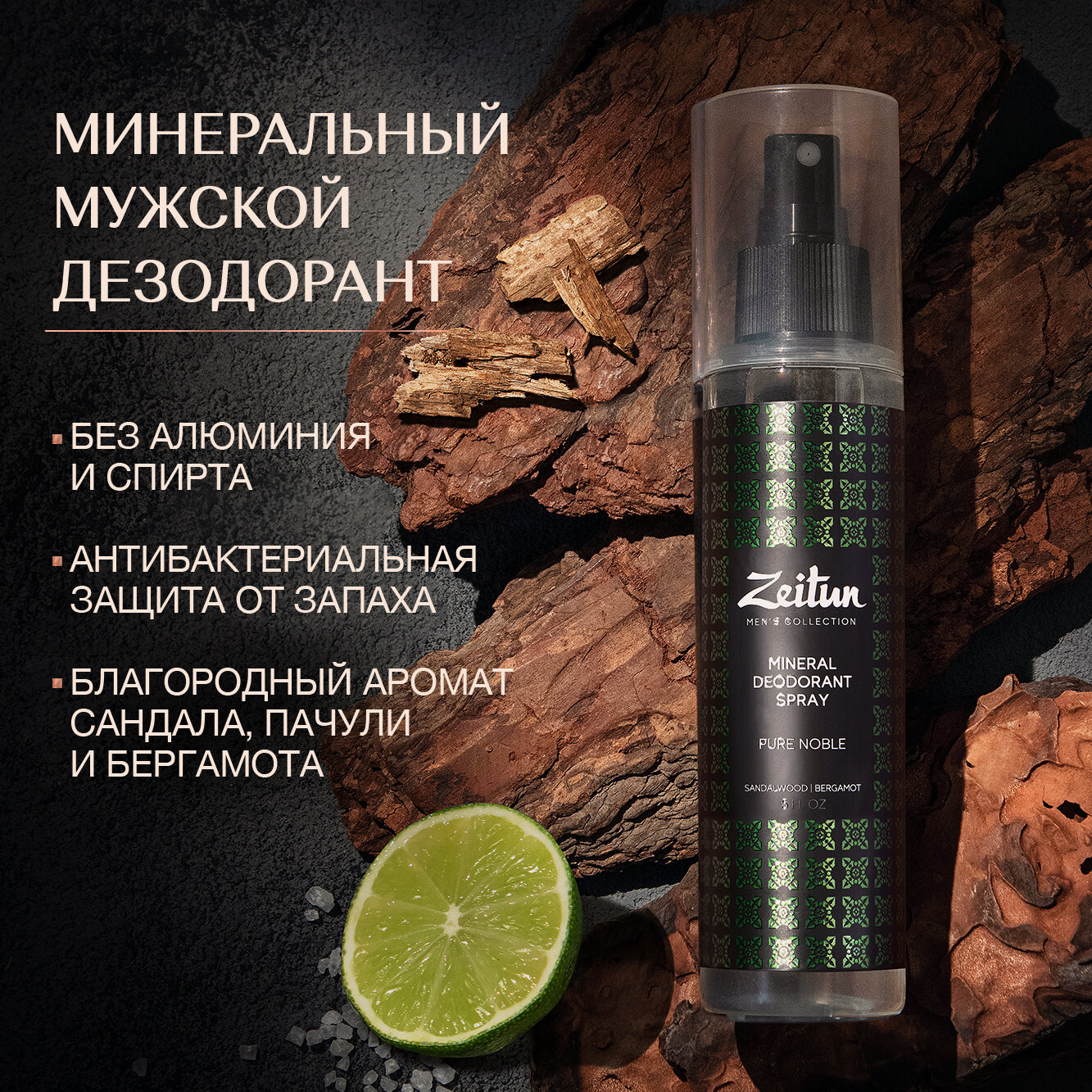 ZEITUN Дезодорант мужской минеральный натуральный Сандал и Бергамот, с коллоидным серебром без алюминия, 150 мл интересное: