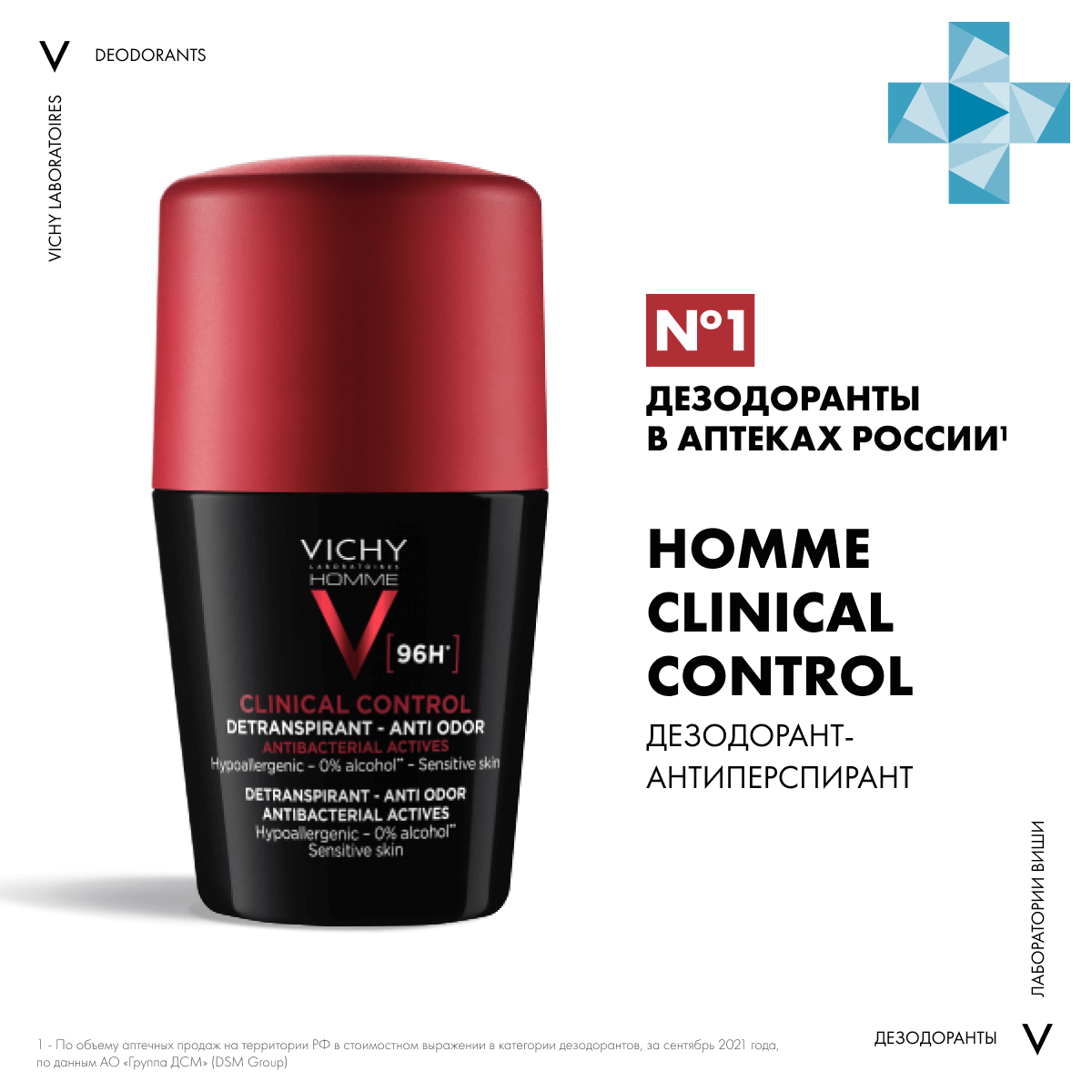Vichy Homme Clinical Control Дезодорант-антиперспирант 96 ч против избыточного потоотделения 50 мл 1 шт интересное: