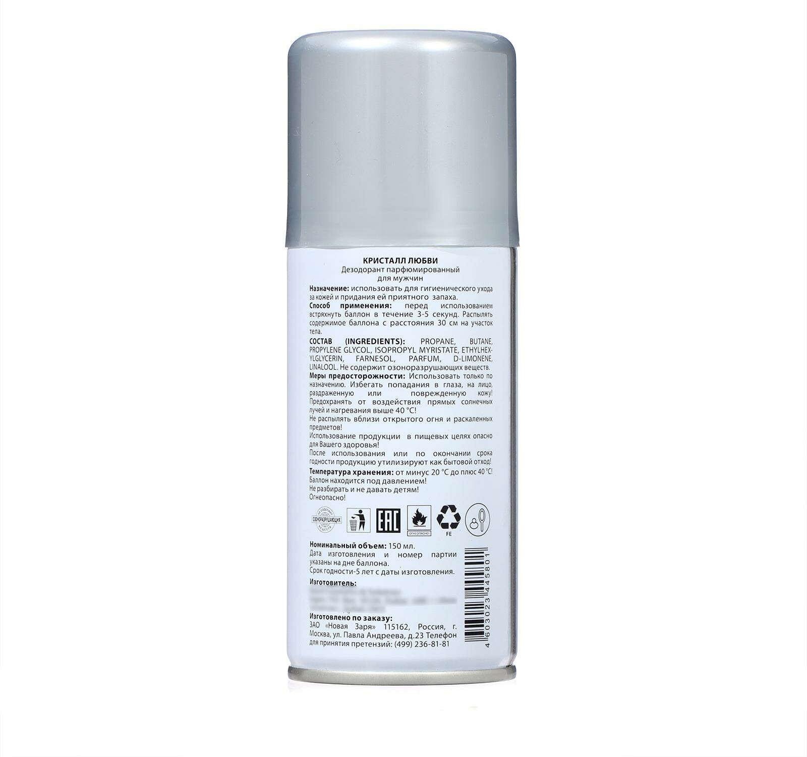 Новая Заря Мужской Кристалл любви (Cristal d'amour) Дезодорант-спрей (spray) 150мл