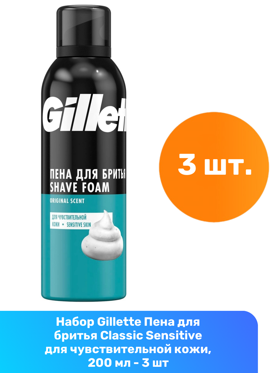 Купить Пена для бритья Жиллет (Gillette) Classic Sensitive, 3 шт по 200 мл, защита от раздражения