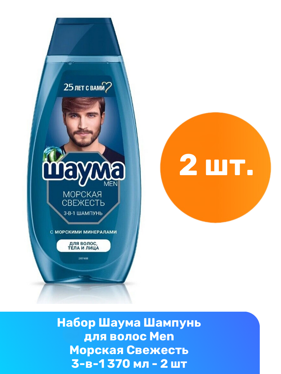 Купить Шаума Шампунь для волос Men Морская Свежесть 3-в-1 370 мл - 2 шт