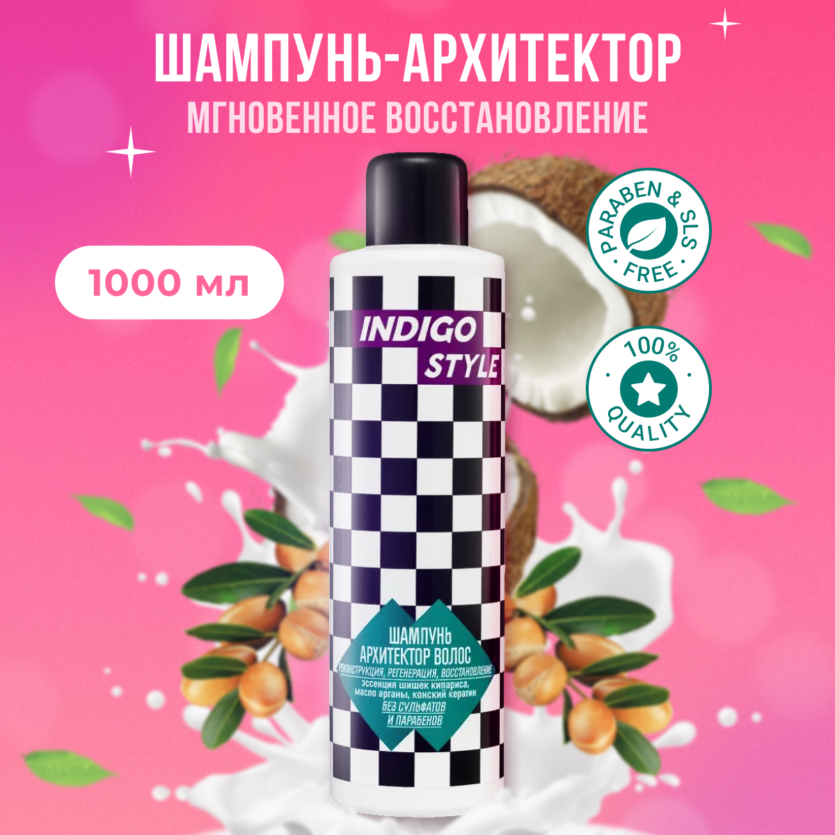 Indigo Style Шампунь-архитектор без сульфатов и парабенов для восстановления и питания, оригинал 100% 1000 мл 2 шт