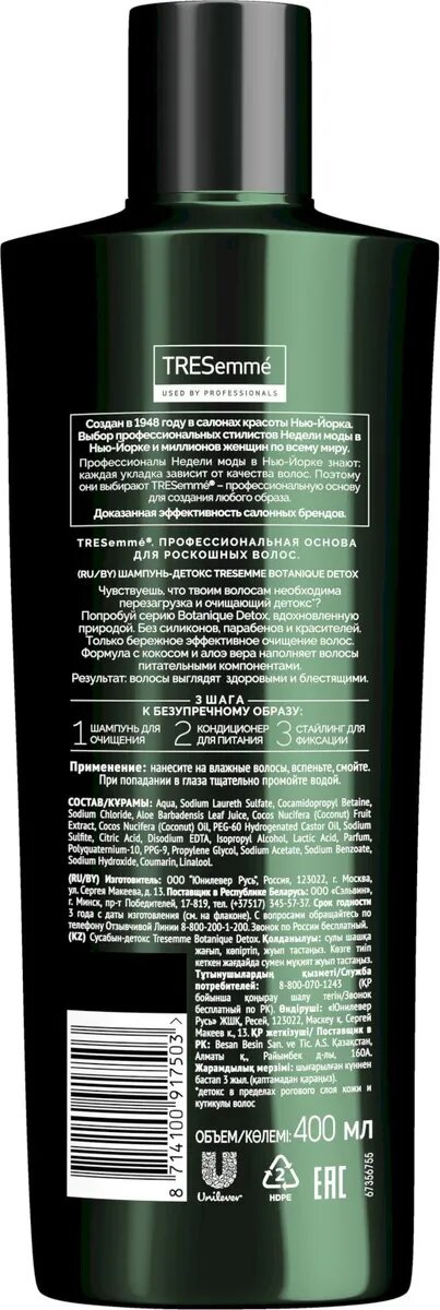 Купить Tresemme Шампунь для волос Botanique Detox, 400 мл, 2 шт