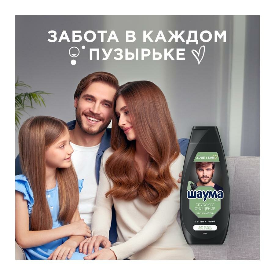 Купить Шампунь для волос 3в1 Шаума мужской тело и лицо Глубокое очищение 3в1 360мл