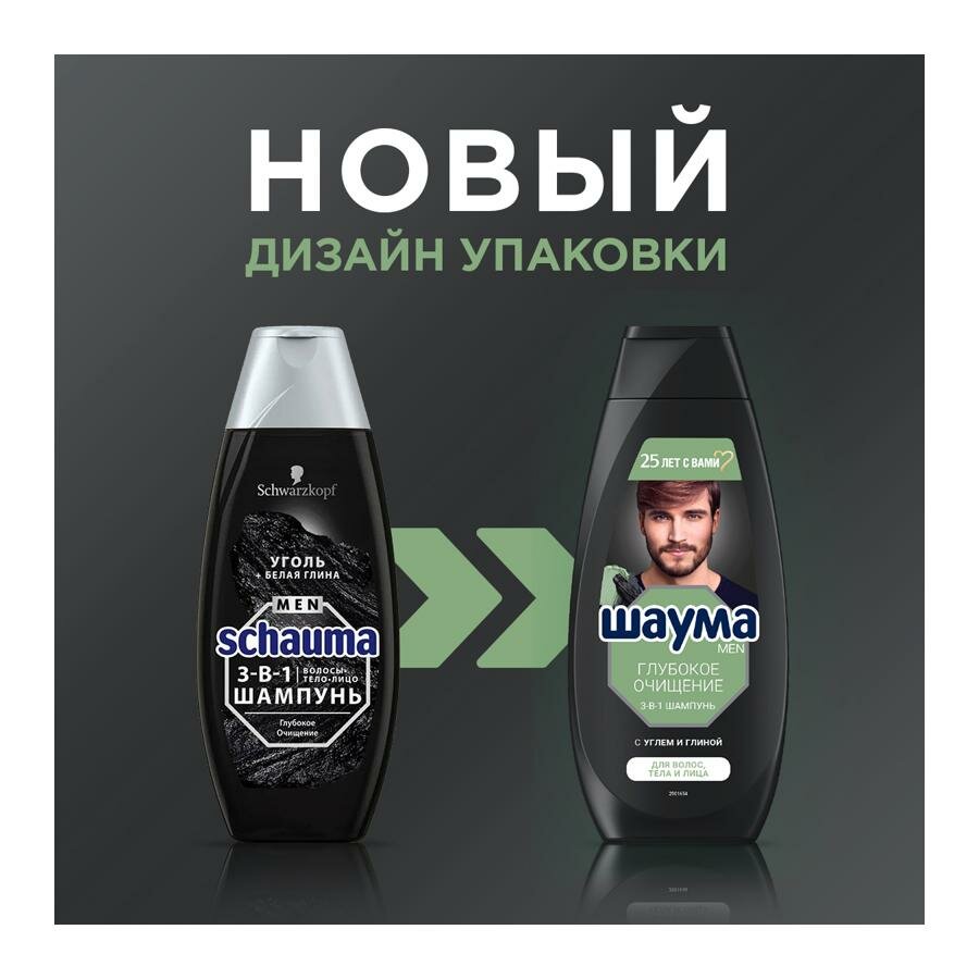 Шампунь Schauma "Men", для волос, тела и лица, Глубокое очищение, 3 в 1, 360 мл