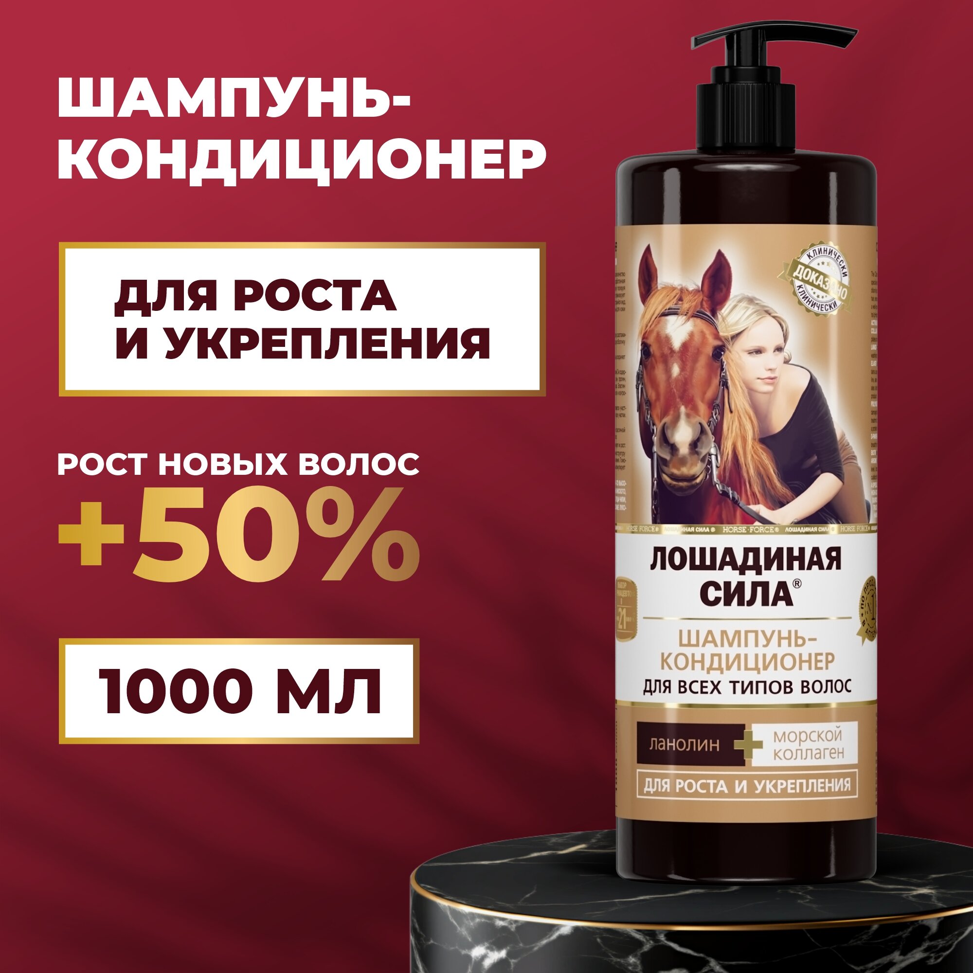 Лошадиная сила шампунь-кондиционер с коллагеном и ланолином, 1000 мл 1 шт