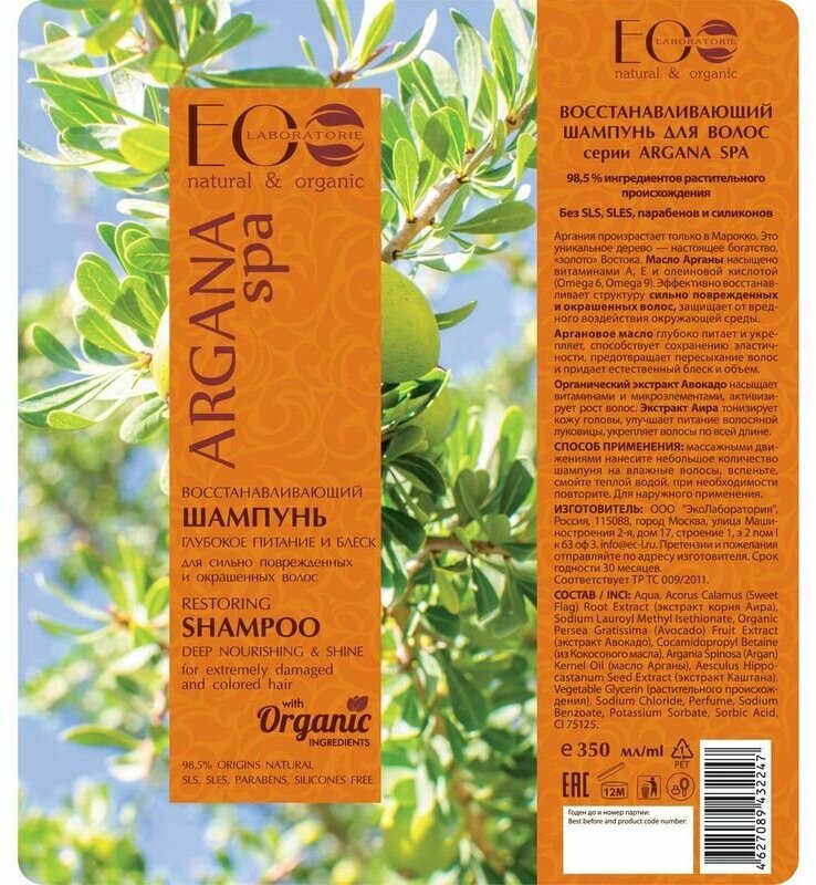 | Не содержит | ГМО / глютен / искусственных консервантов / искусственных красителей / отдушек / парабенов / парафин / полиэтиленгликоля / продуктов животного происхождения / пропиленгликоля / спирт / сульфатов / формалина / фталатов |
