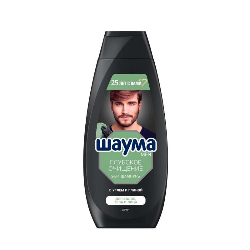 Купить Шампунь для волос Шаума Men Глубокое Очищение 3в1 Уголь + Белая Глина 360 мл