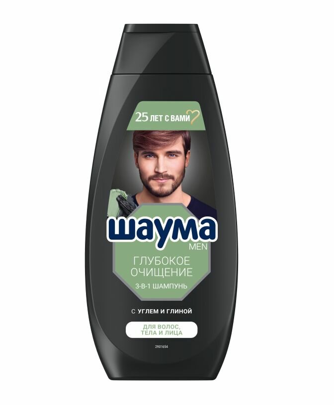Шаума Men Шампунь для волос, тела и лица мужской Глубокое Очищение 3-в-1, 360 мл
