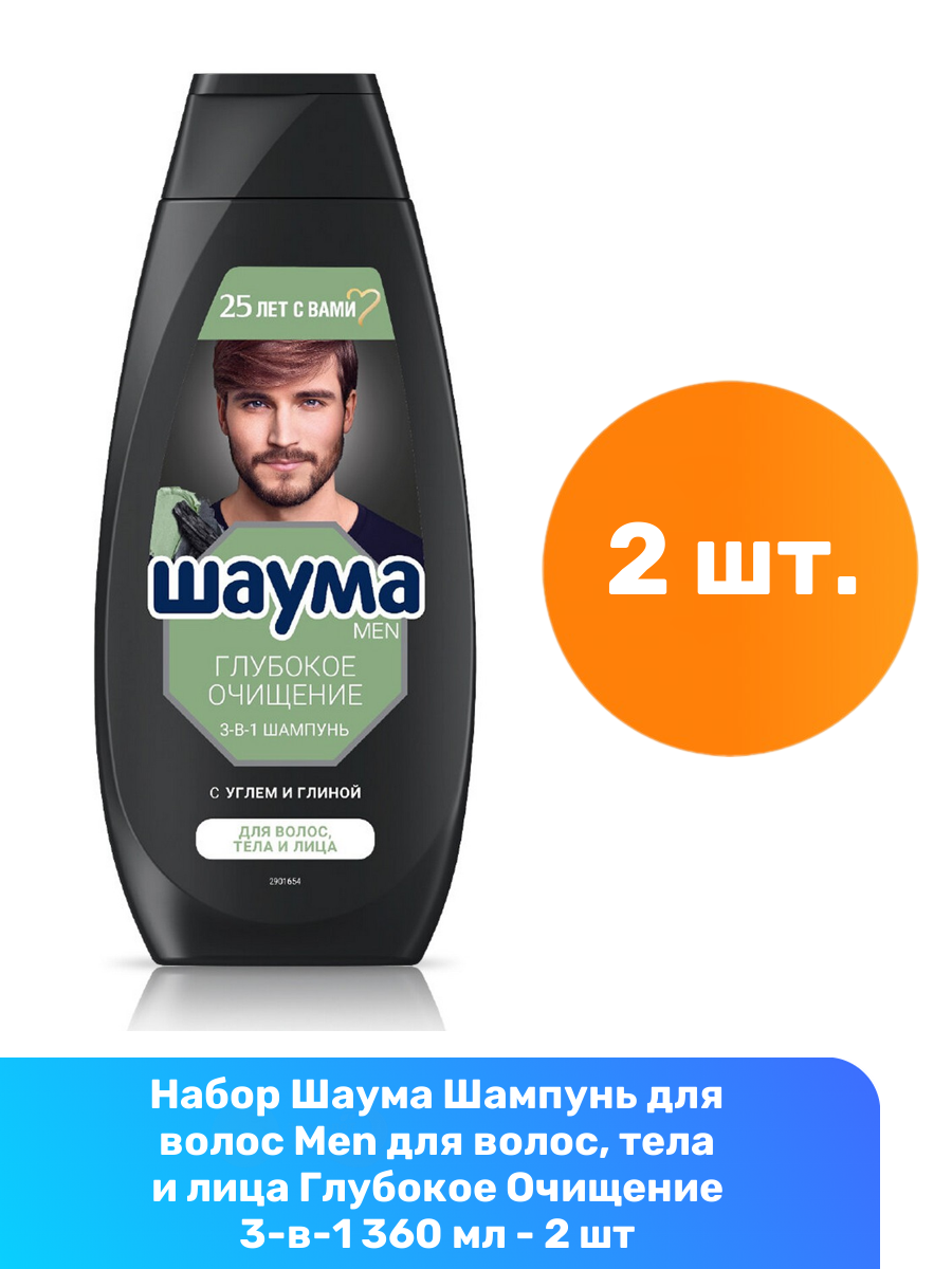 Купить Шаума Шампунь для волос Men для волос, тела и лица Глубокое Очищение 3-в-1 360 мл - 2 шт