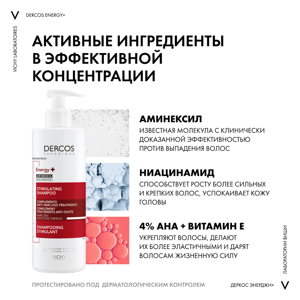 Шампунь против выпадения волос Dercos Energy+ Vichy/Виши 400мл