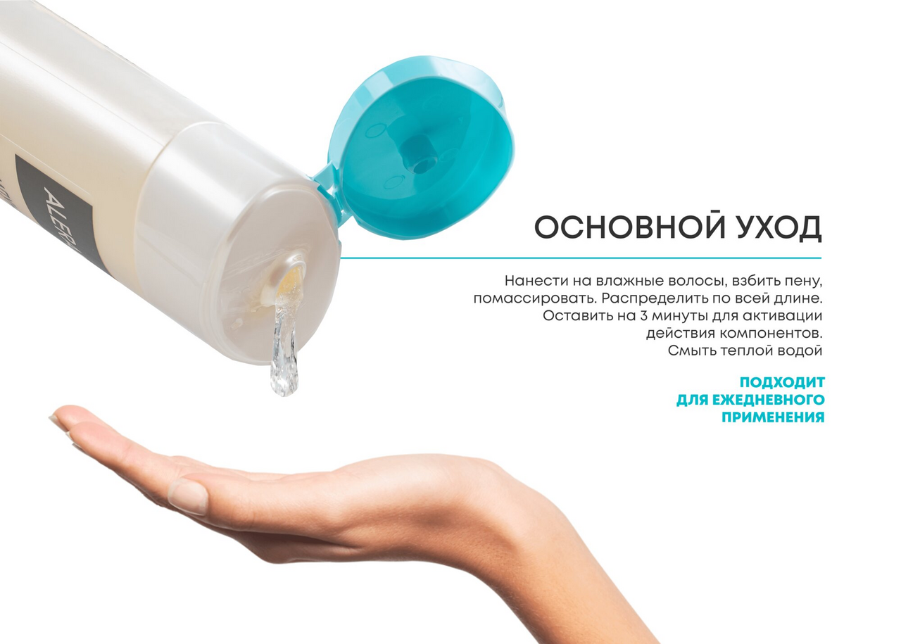 | Способ применения | Небольшое количество шампуня нанести на влажные волосы, взбить пену, помассировать, оставить на 1-3 минуты, затем смыть теплой водой. Для достижения наилучшего эффекта после применения шампуня рекомендуется использовать бальзам-ополаскиватель Алерана. |
