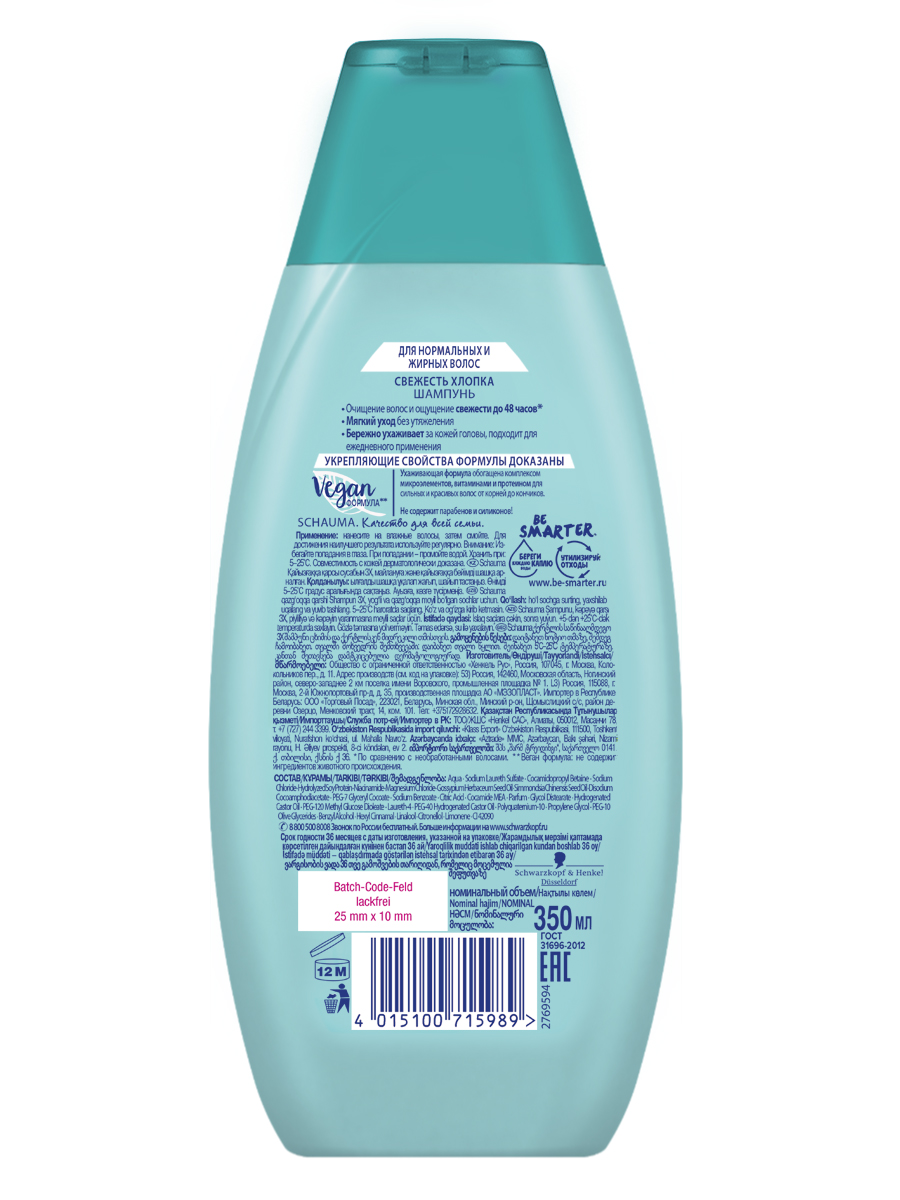 Купить Шампунь Schauma Свежесть Хлопка, 350 мл