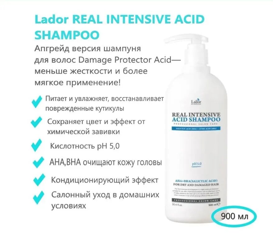 Купить Шампунь для сухих и поврежденных волос Lador Real Intensive Acid Shampoo, 900 мл / Корейский шампунь