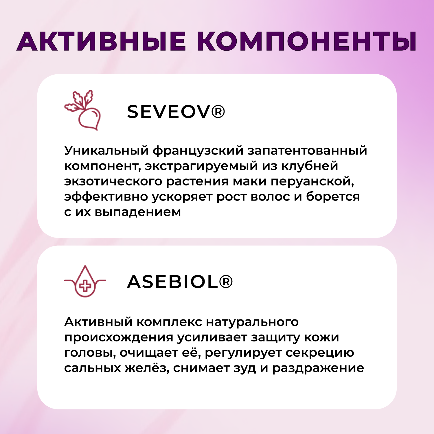 | Состав | Aqua, Sodium Laureth Sulfate, Cocamidopropyl Betaine, Coco-Glucoside, Cocamide DEA, Sodium Chloride, Glycerin, Parfum, SEVEOV® (Lepidium Meyenii Root Extract), Polyquaternium-67, Gryceryl Stearate, Cetearyl Alcohol, Stearic Acid, Sodium Lauroyl Glutamate, Д-ПАНТЕНОЛ (Panthenol), Methylchloroisothiazolinone, Methylisothiazolinone, КОФЕИН (Caffeine), ГИДРОЛИЗОВАННЫЙ КЕРАТИН (Hydrolyzed Keratin), ASEBIOL (Pyridoxine HCl, Niacinamide, Hydrolyzed Yeast Protein, Threonine, Allantoin, Biotin), Disodium EDTA, Citric Acid. |