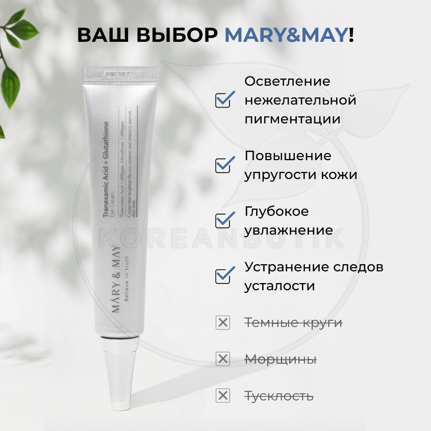 Осветляющий крем для глаз c витамином С | Mary&May Tranexamic Acid+ Glutathion Eye Cream 30мл интересное: