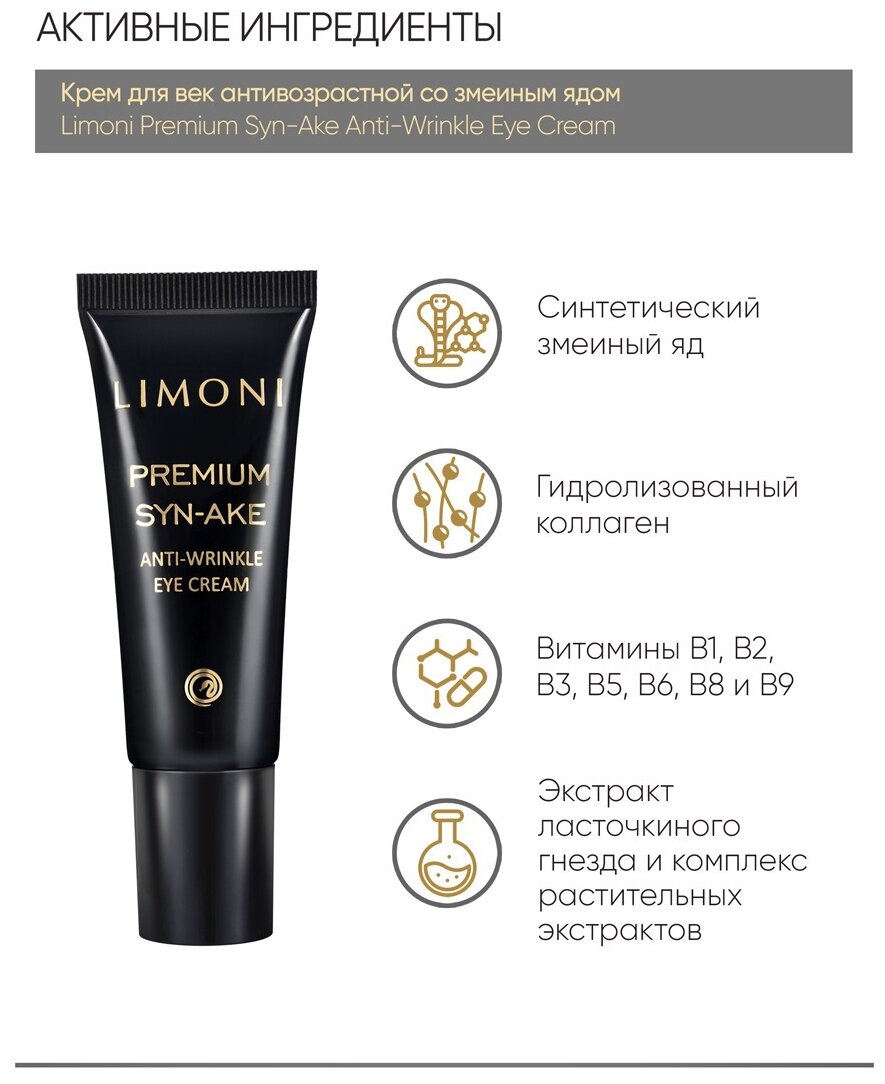 Антивозрастной крем для век Limoni со змеиным ядом, 25 мл интересное: