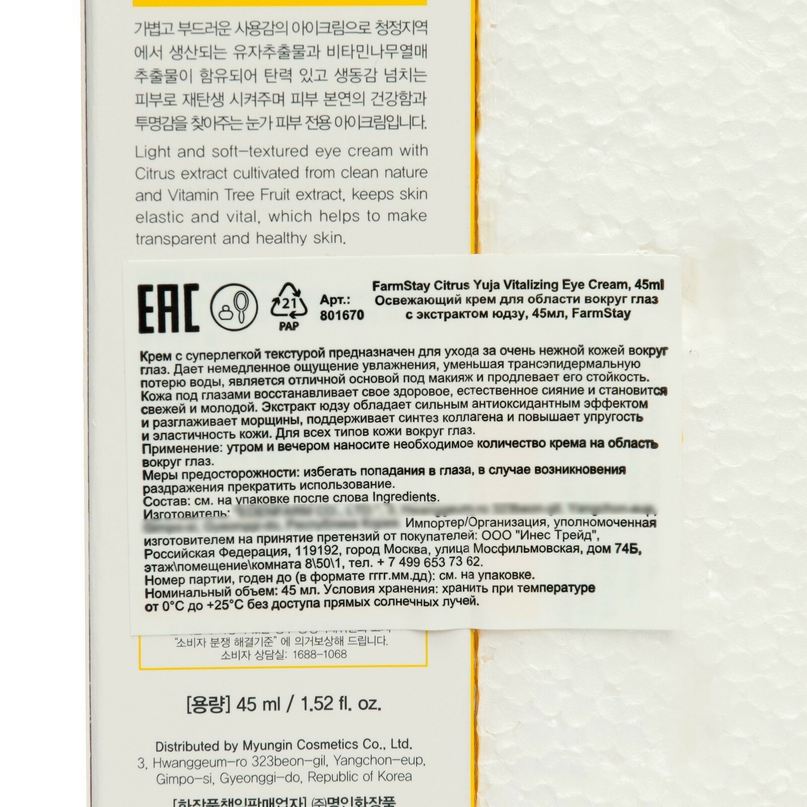 Купить FarmStay Освежающий крем для области вокруг глаз с экстрактом юдзу, 45мл