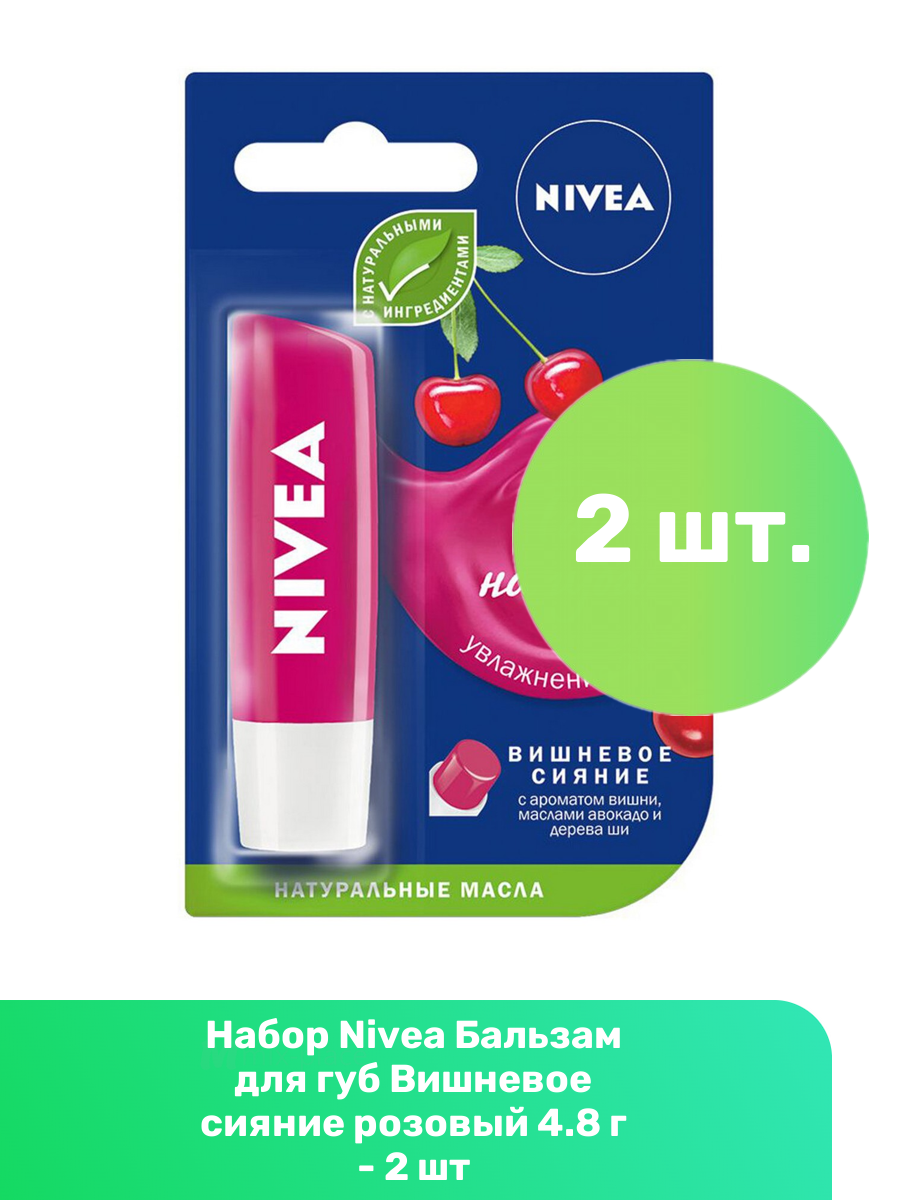 Купить Nivea Бальзам для губ Вишневое сияние розовый 4.8 г - 2 шт