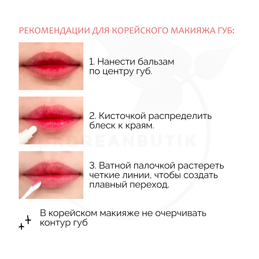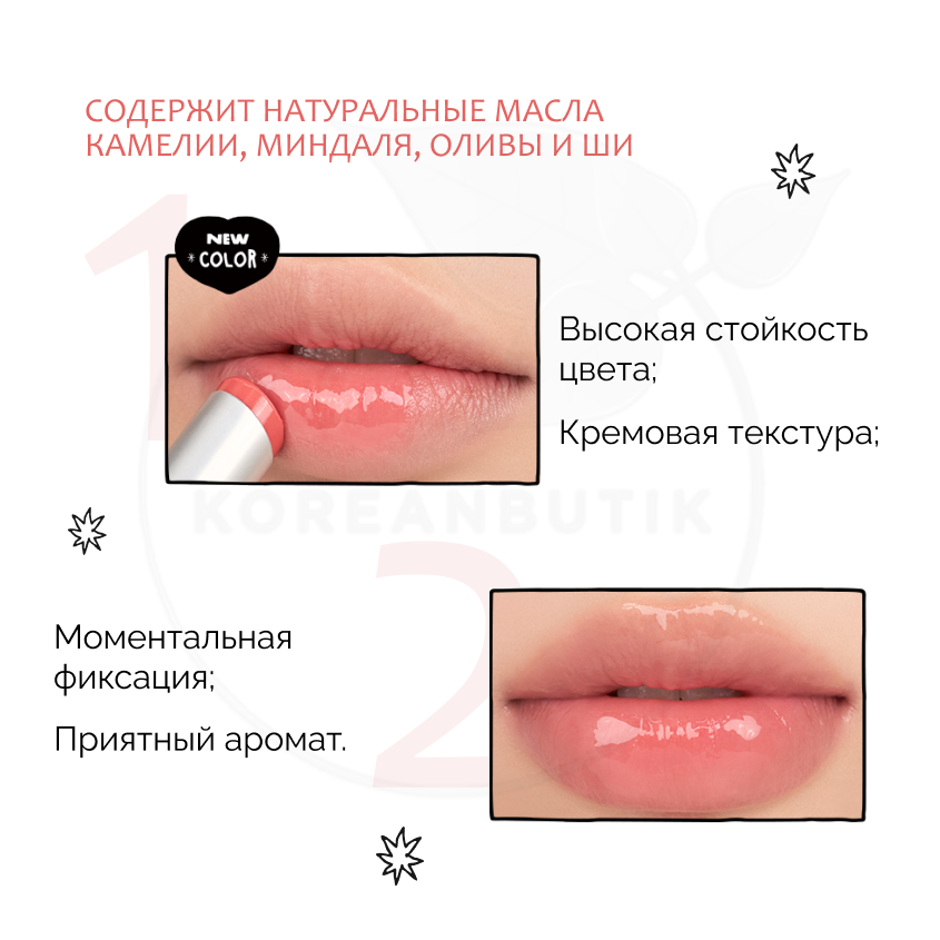 | Способ применения | Нанесите необходимое количество средства на сухие губы. Для более насыщенного цвета бальзам рекомендуется нанести дважды. |