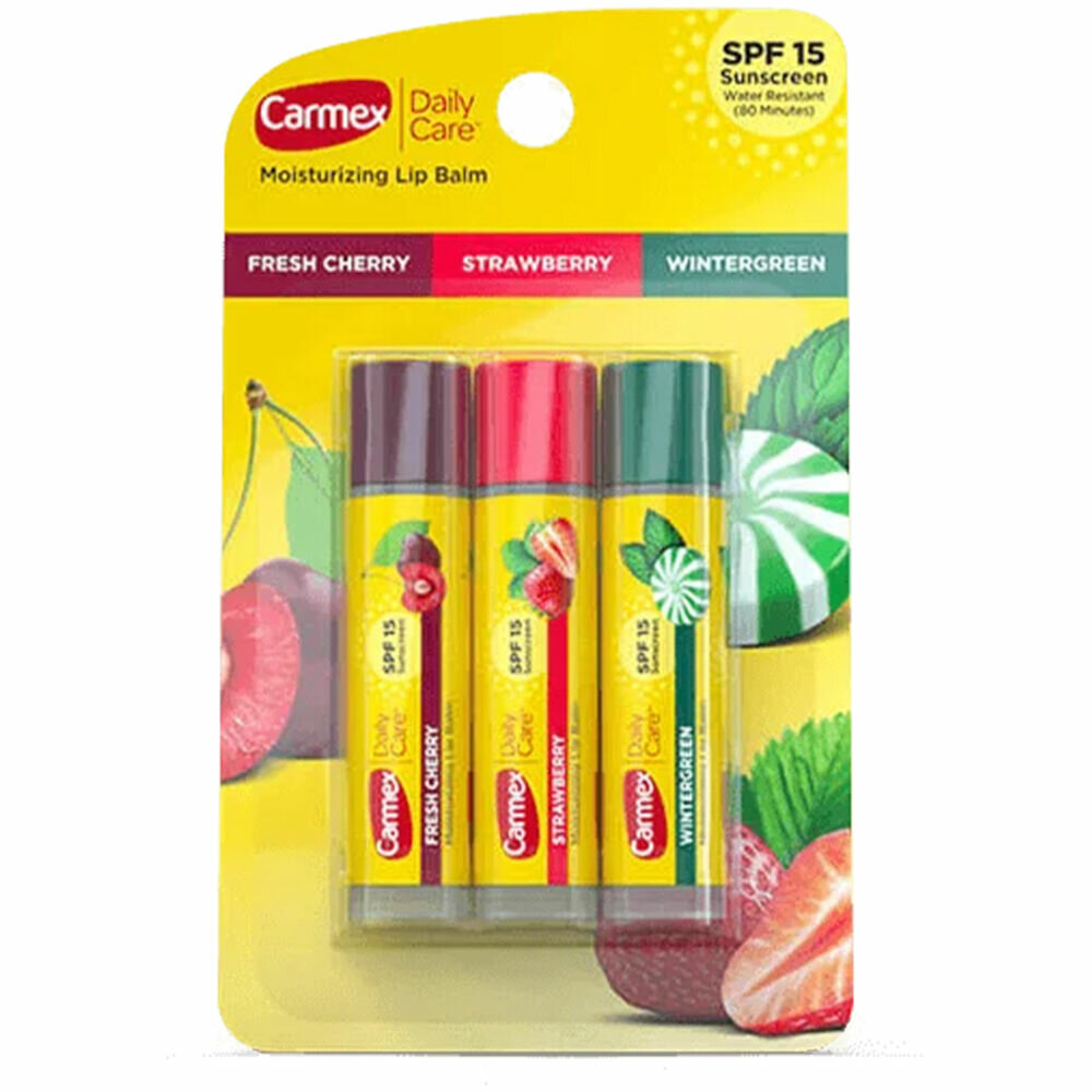 Купить Carmex Набор бальзам для губ ассорти, вишня, клубника, мятный леденец, в стике SPF 15, 4,25 г., 3 шт.
