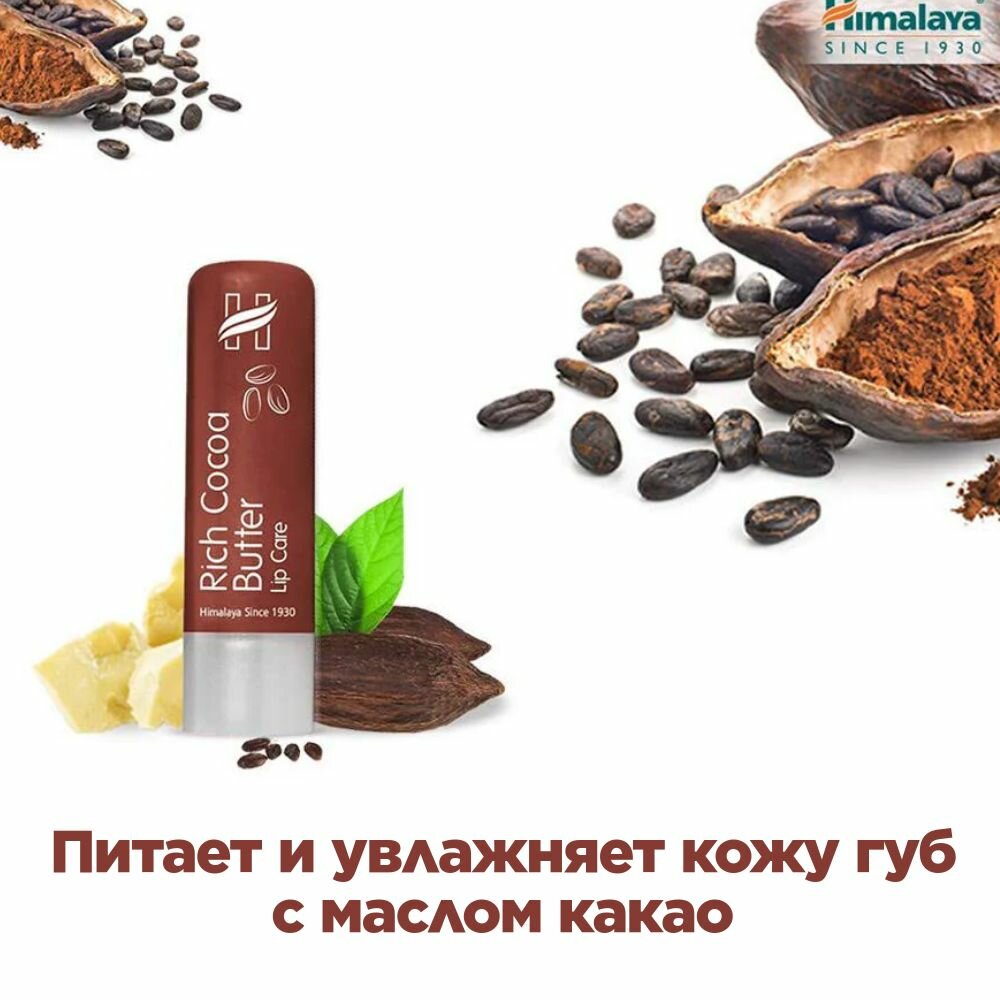 Бальзам для губ интенсивно увлажняющий с маслом какао без парабенов и парафинов, Himalaya (Хималайя), 10г