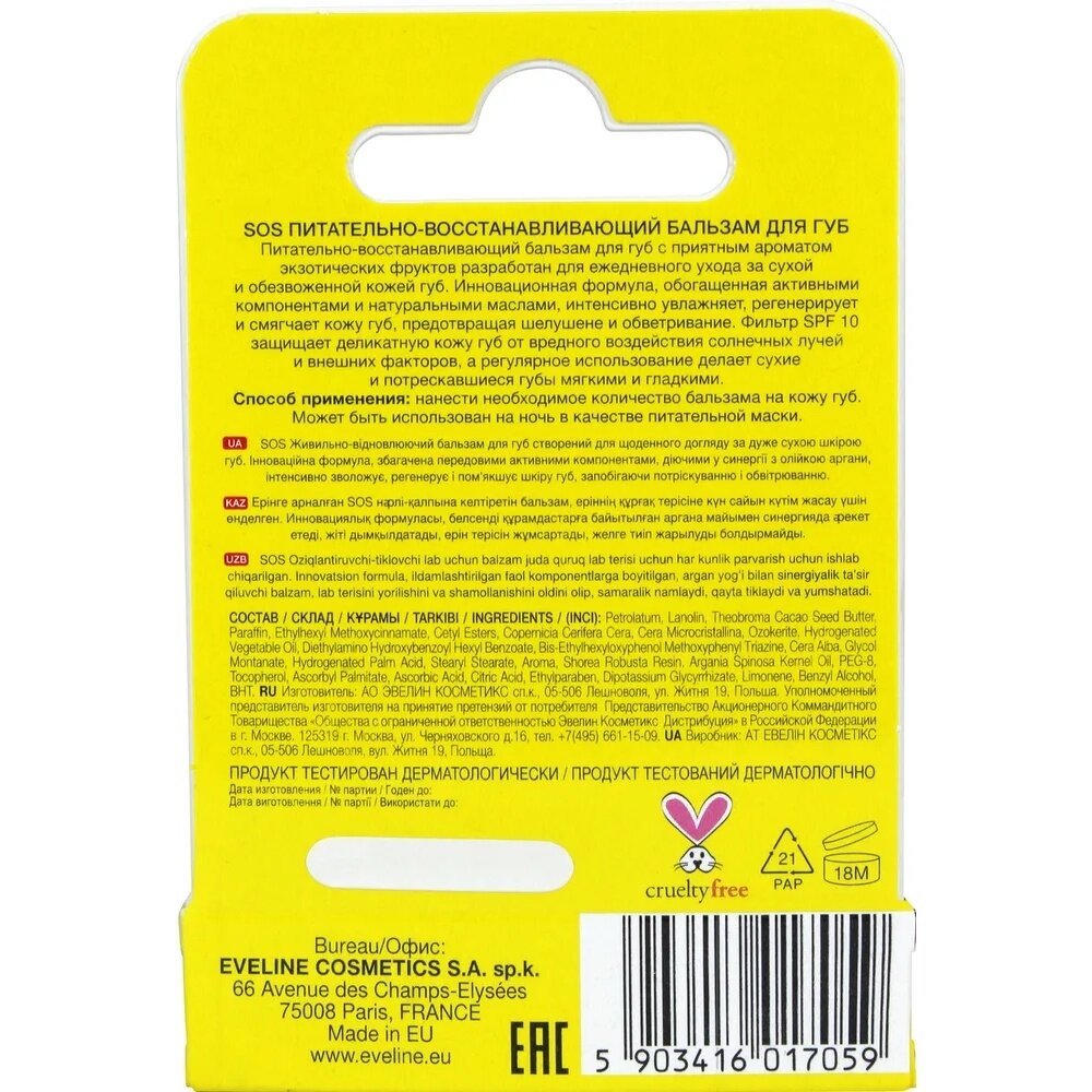 Бальзам для губ EVELINE SOS ARGAN OIL EXOTIC MANGO восстанавливающий 4,5 г