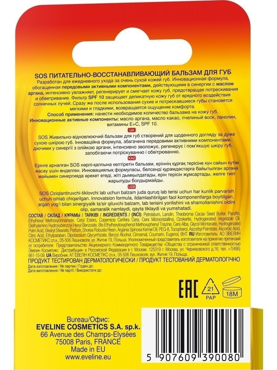 Купить EVELINE Бальзам для губ SOS вишня (питательно-восстанавливающий), 4,5 г