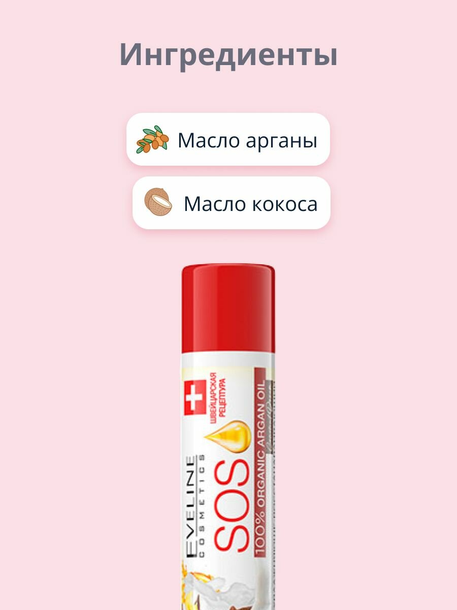 Бальзам для губ Eveline SOS 100% Organic Argan Oil питательно-восстанавливающий арбуз