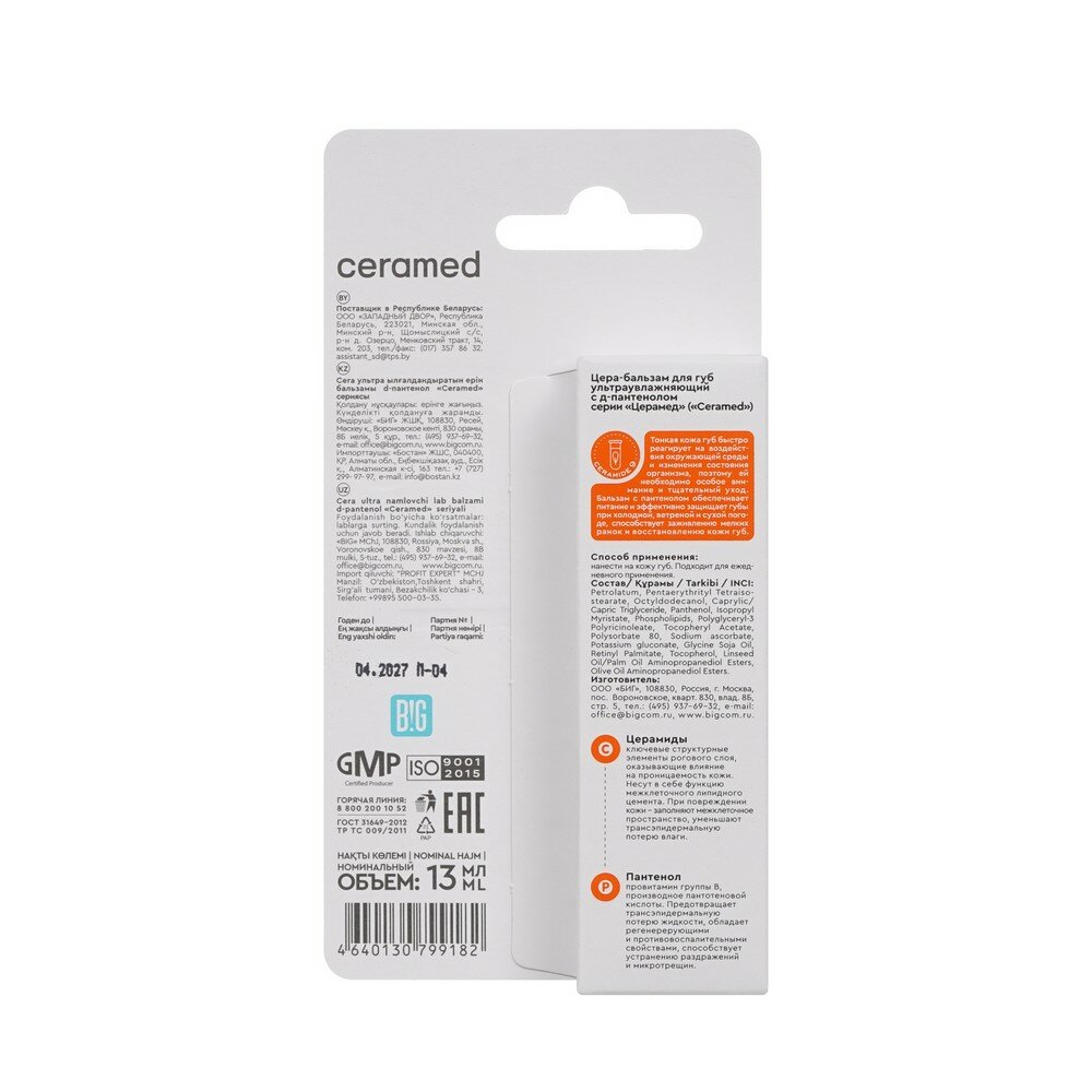 Цера-бальзам для губ ультраувлажняющий с д-пантенолом, 13 мл Ceramed интересное: