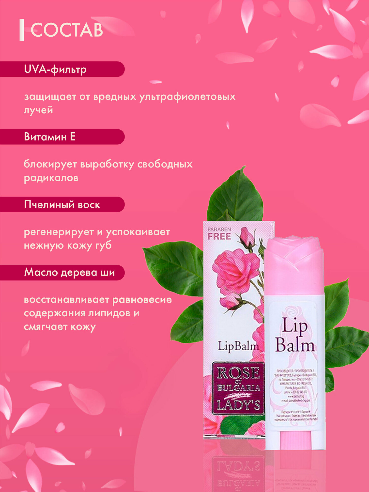 Бальзам для губ увлажняющий, питательный, с ароматом розы интересное: