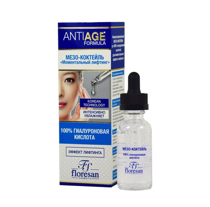 Мезо-коктейль Floresan Моментальный лифтинг с гиалуроновой кислотой формула Anti-age 30 мл