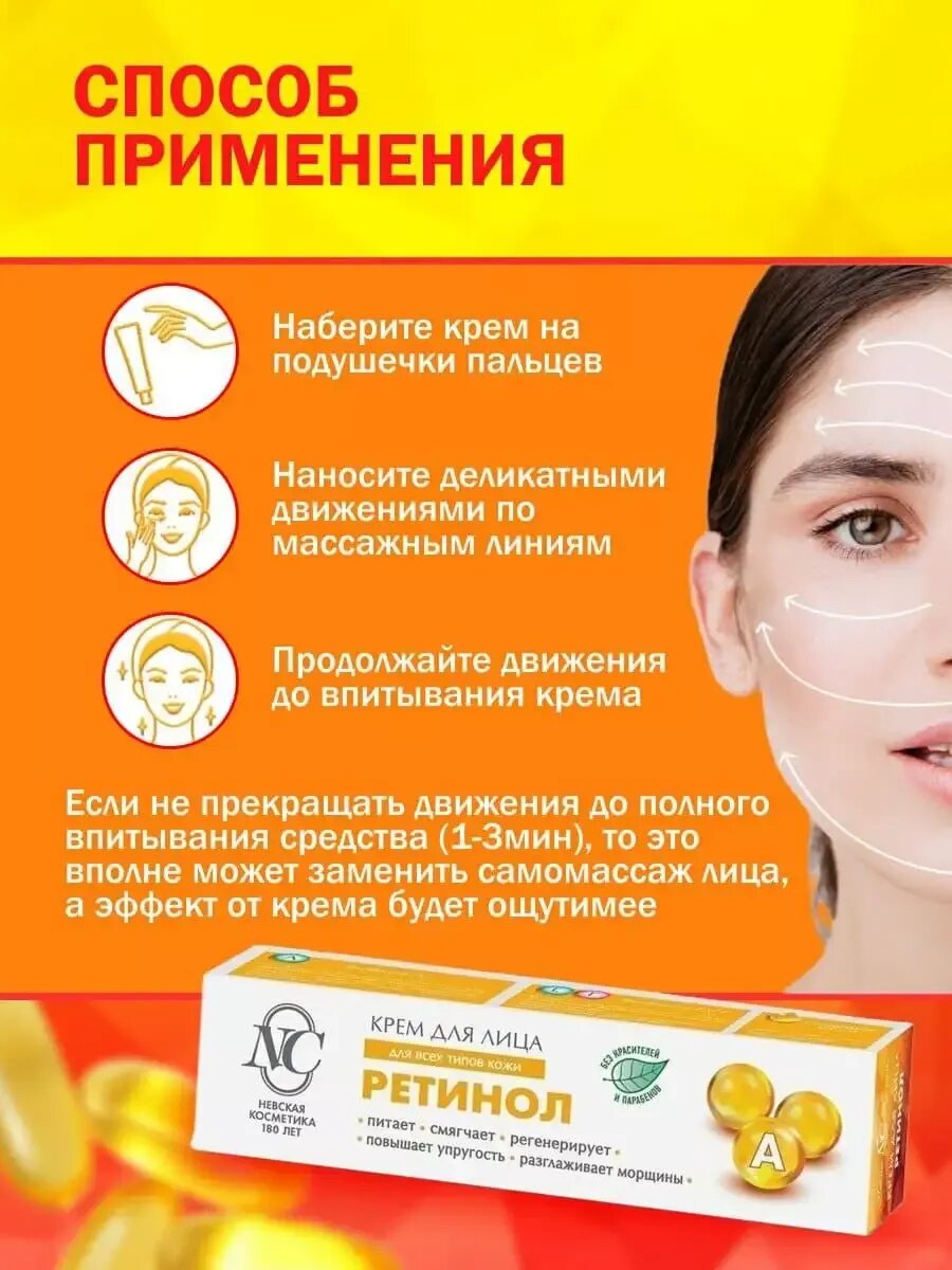 Крем для лица невская косметика (туба 40мл) Ретинол для всех типов кожи, 6 шт.