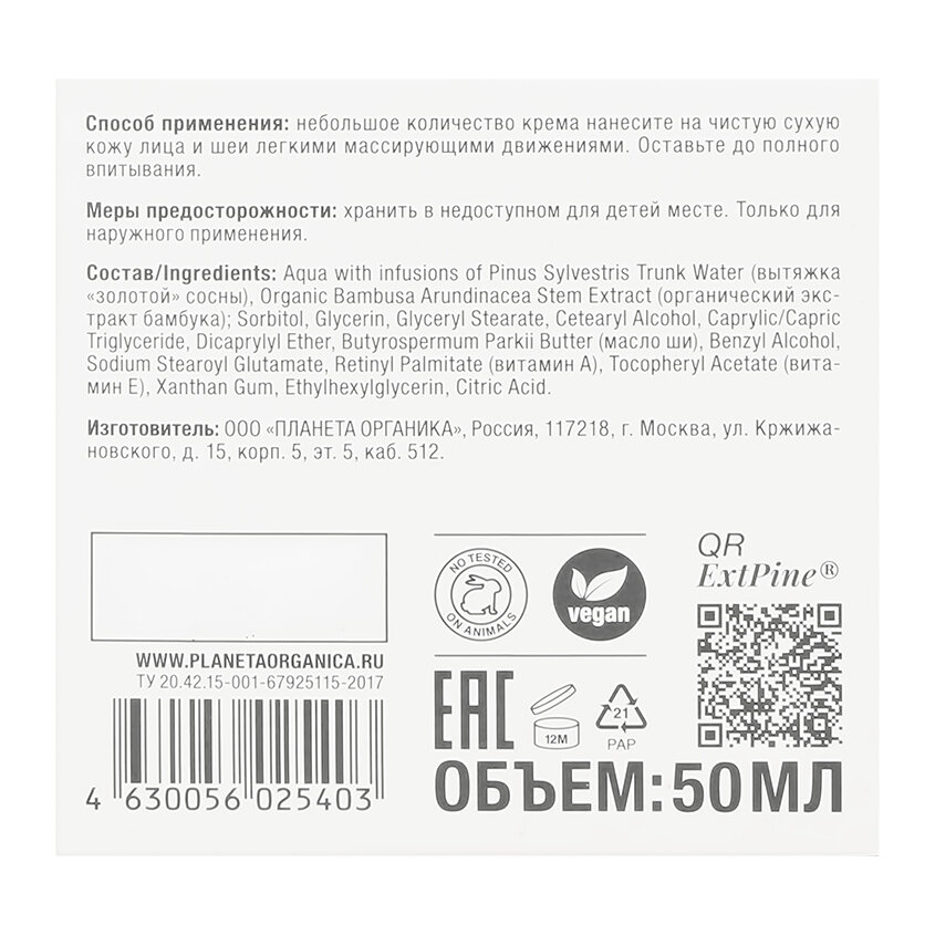 Planeta Organica Pure Дневной крем для лица “Омолаживающий”, 50 мл