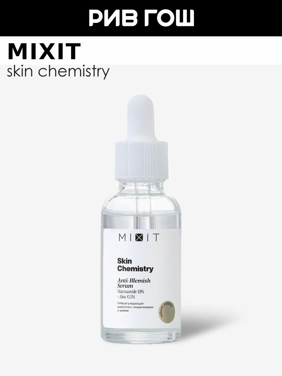 MIXIT Сыворотка для лица себорегулирующая от прыщей, акне и постакне с ниацинамидом и цинком SKIN CHEMISTRY, 30 мл