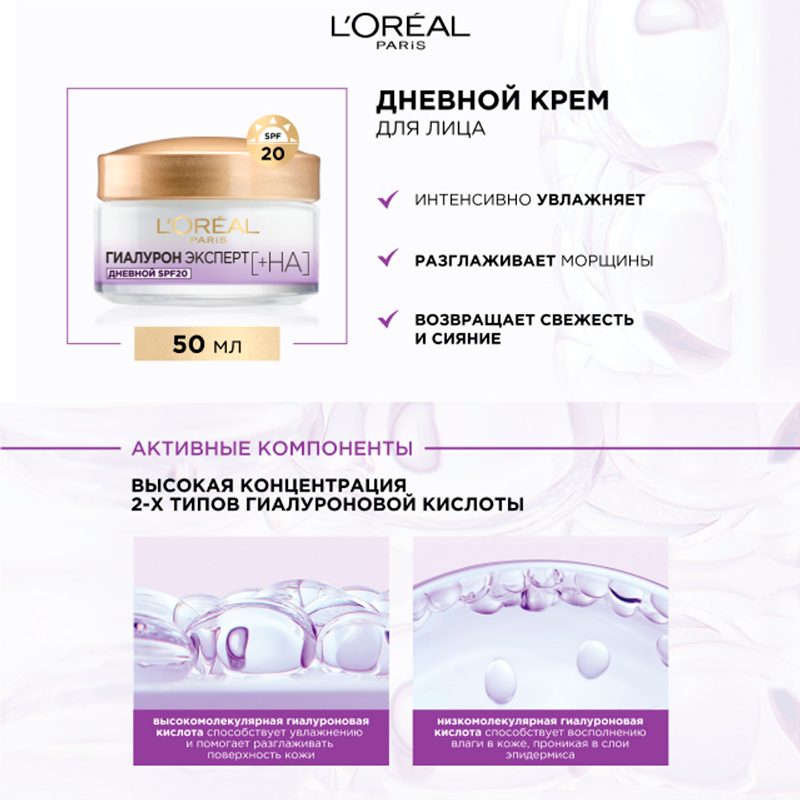 L'Oreal Paris Дневной крем "Гиалурон Эксперт", 50 мл, SPF20 интересное: